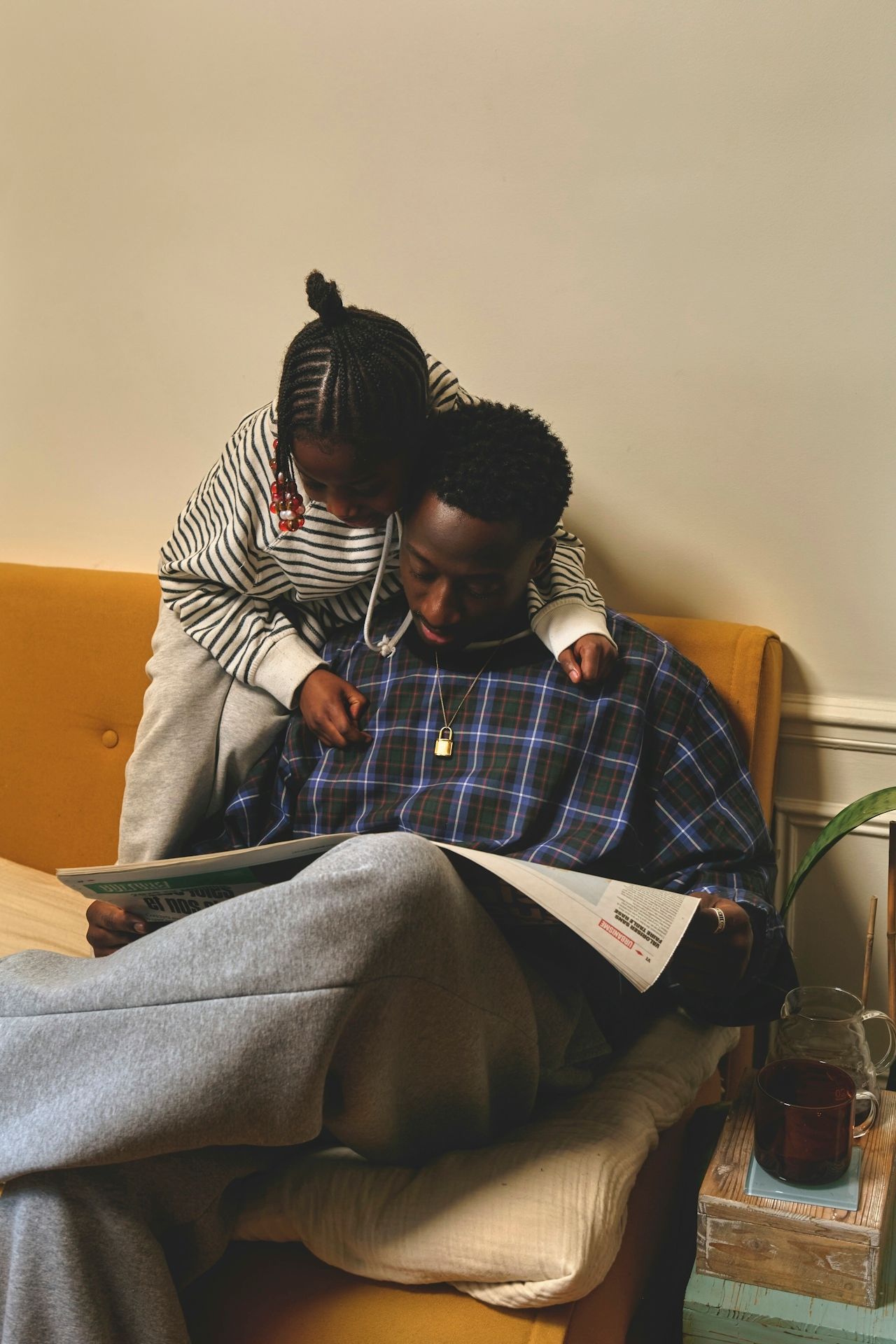 Not performing it. Not announcing "look, I'm reading!" Just reading. A novel before bed. The newspaper on a Sunday morning. A magazine on the couch while they play nearby.